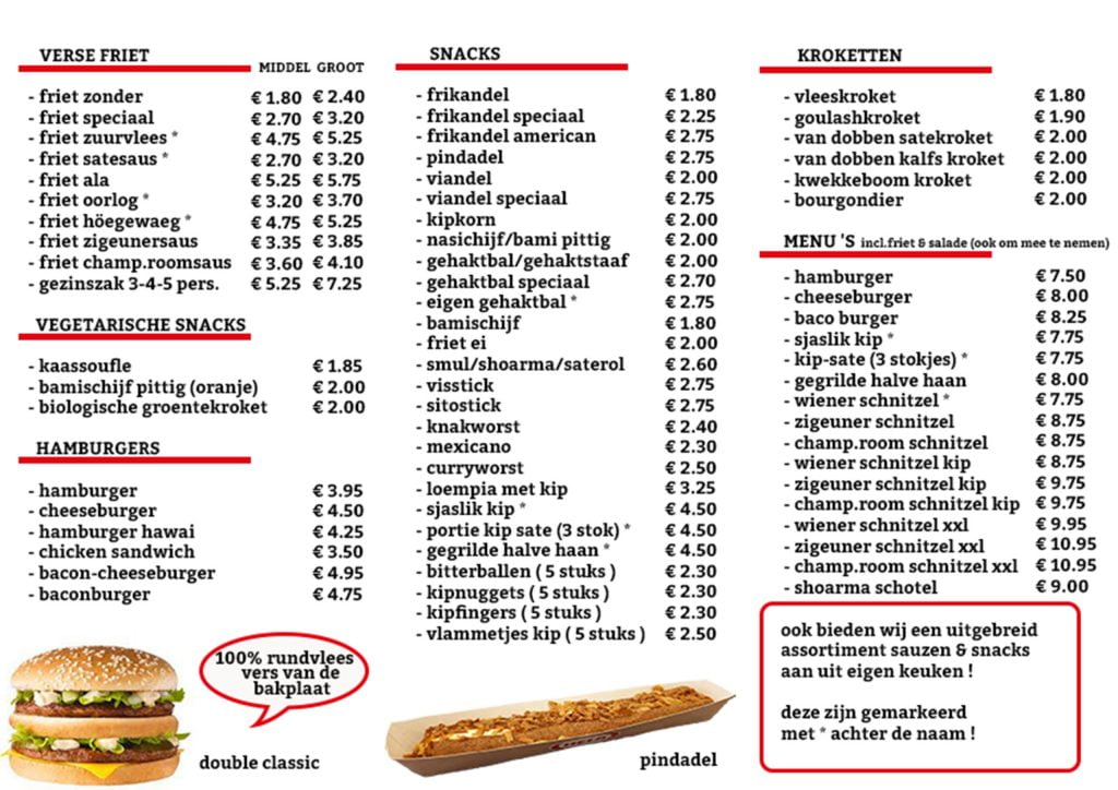 Tevens bieden wij een groot aanbod verschillende snacks, burgers die wij vers bereiden, precies naar uw wens.
